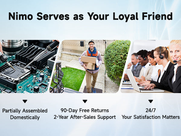 - تتمتع منتجات Nimo PC بضمان لمدة عامين.