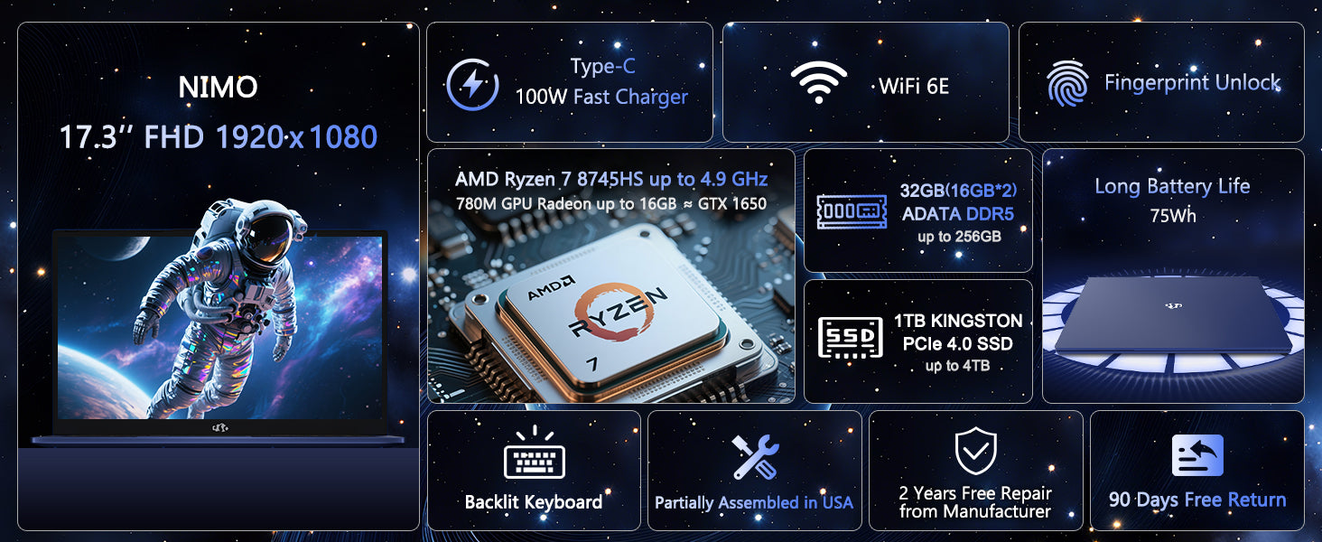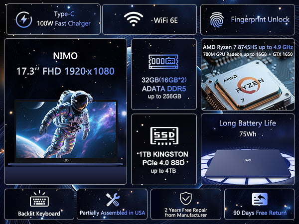 Refurbished Products: Nimo PC refurbished products are covered by a 1-year warranty.
