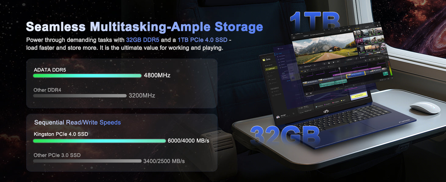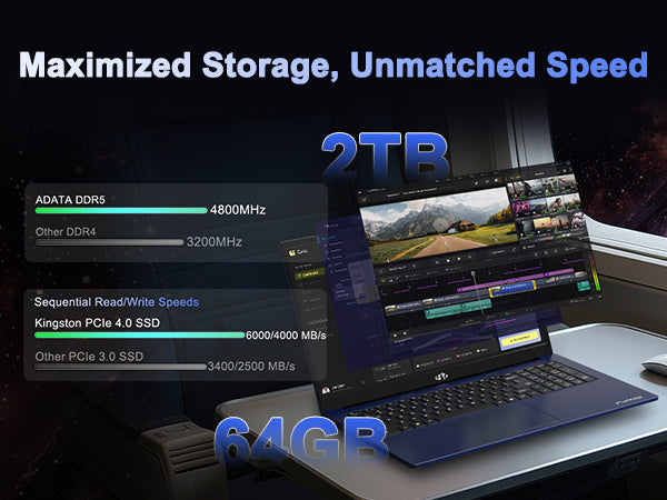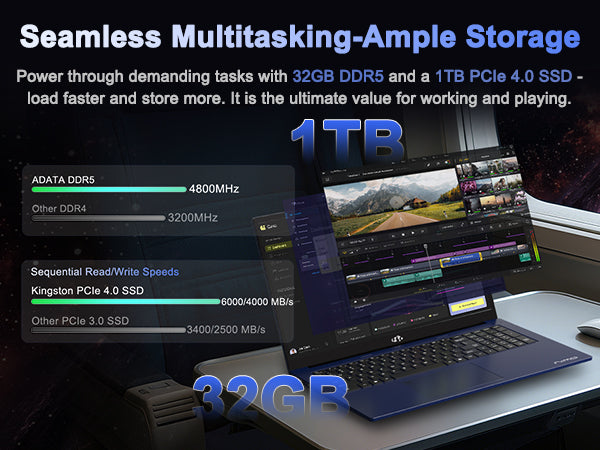 - Provides excellent performance and ample storage capacity for handling large applications and files.