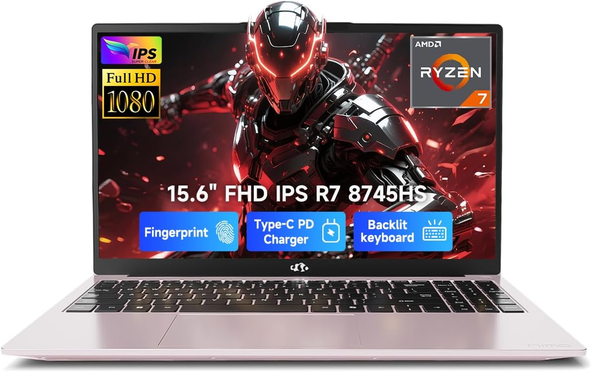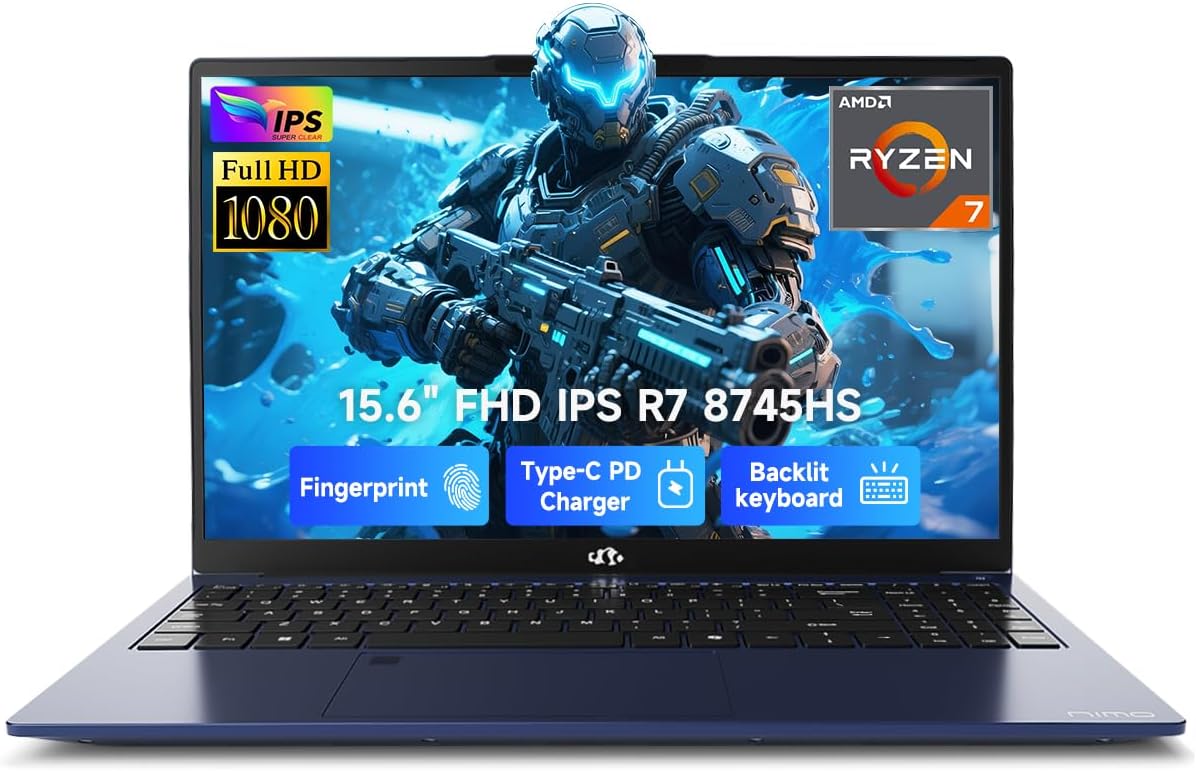 NIMO 15.6" IPS FHD-Gaming-Laptop, AMD Ryzen 7 8745HS (8C/16T, up to 4.9GHz) Radeon 780M Graphics Business Computer with 100W Type-C Backlit Keyboard, Fingerprint USB-C 4.0