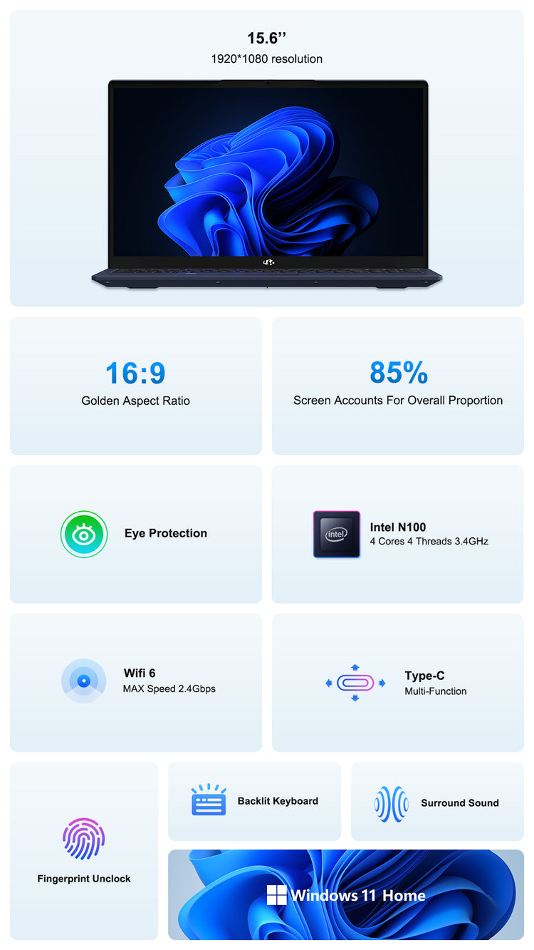 Equipped with the latest 12th Gen Intel Alder Lake N100 processor, the N151 can handle demanding tasks like multitasking, video editing, and online learning with ease.