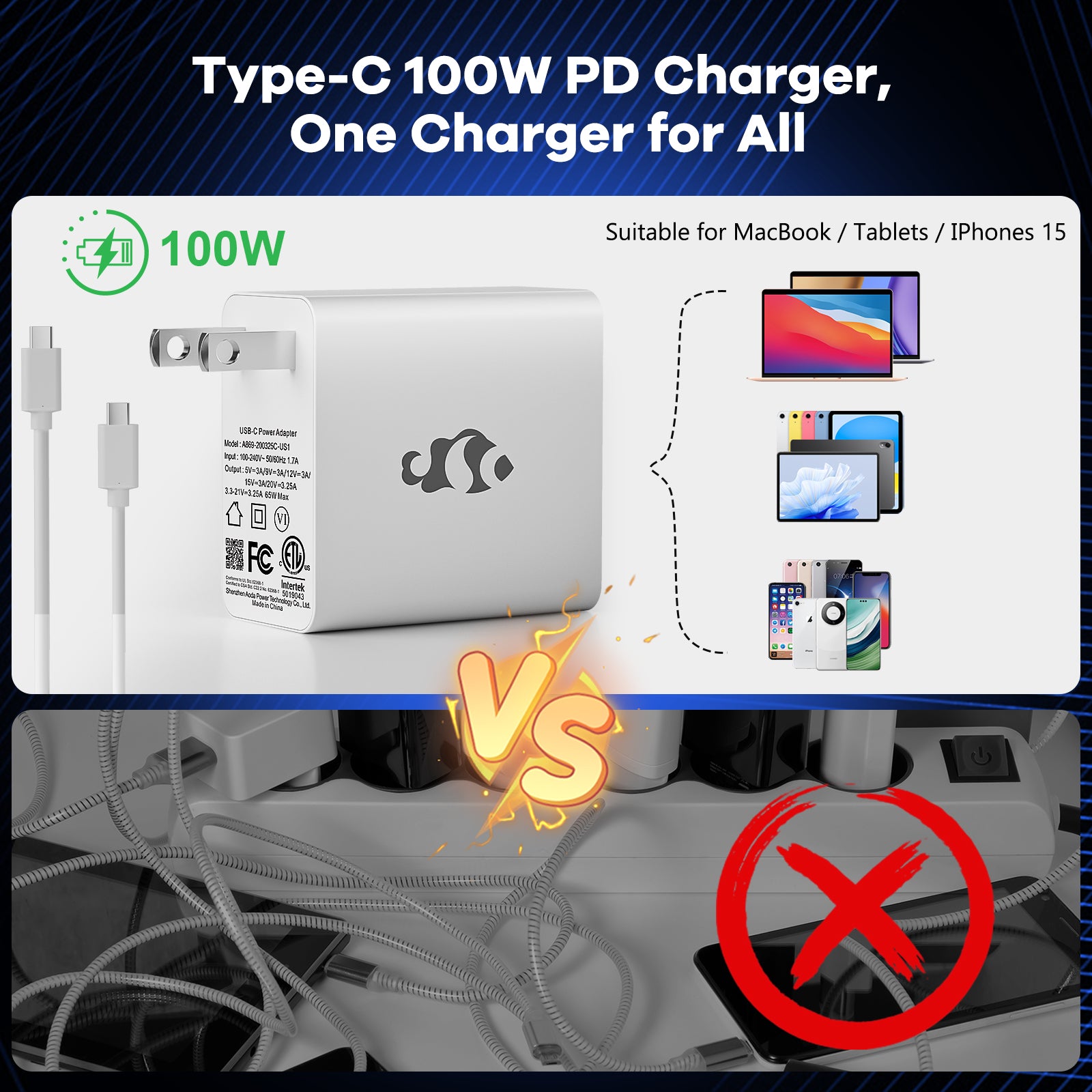 Lightweight and Portable Laptop Charger - Fast Charging Without the Bulk and Inconvenience of Traditional Chargers. Type-C PD Charger, One Charger for All. Suitable for Computers / Tablets / IPhones 15 / MacBook.