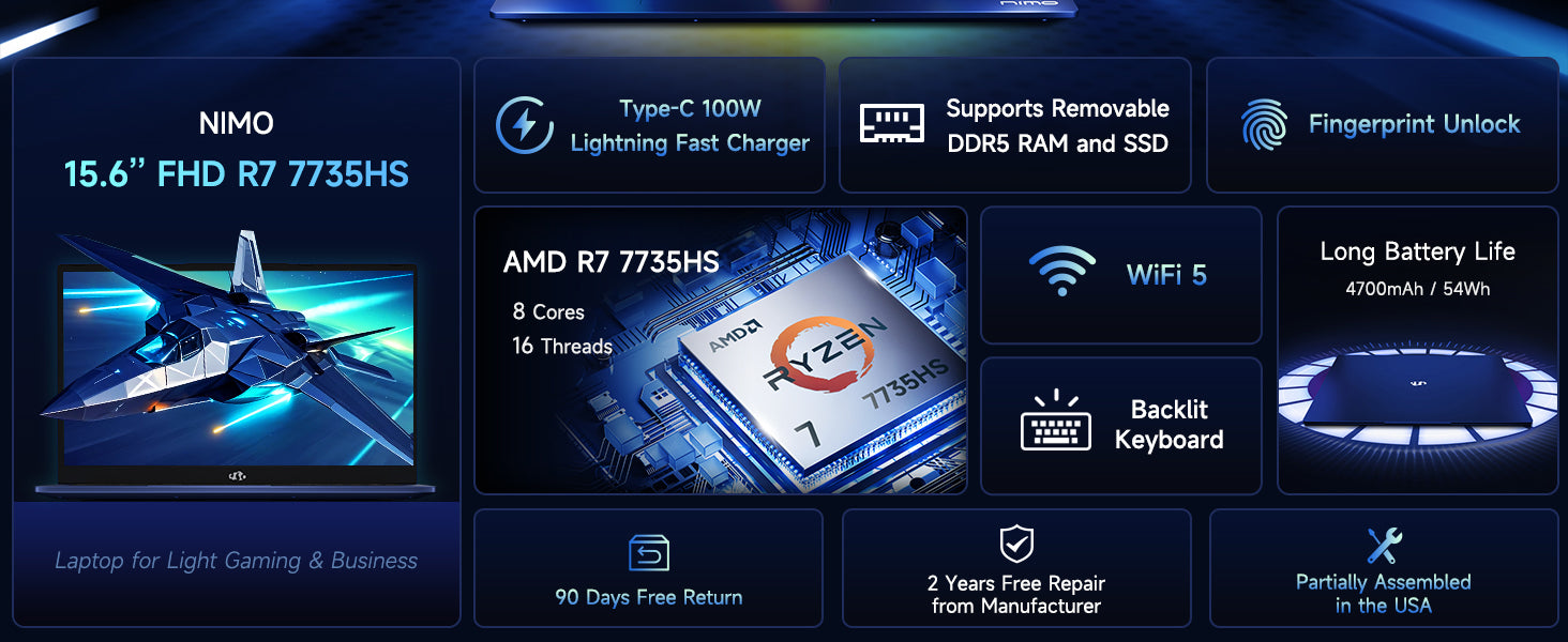 Nimo 15.6" N159 Ryzen 7 7735HS FHD Laptop