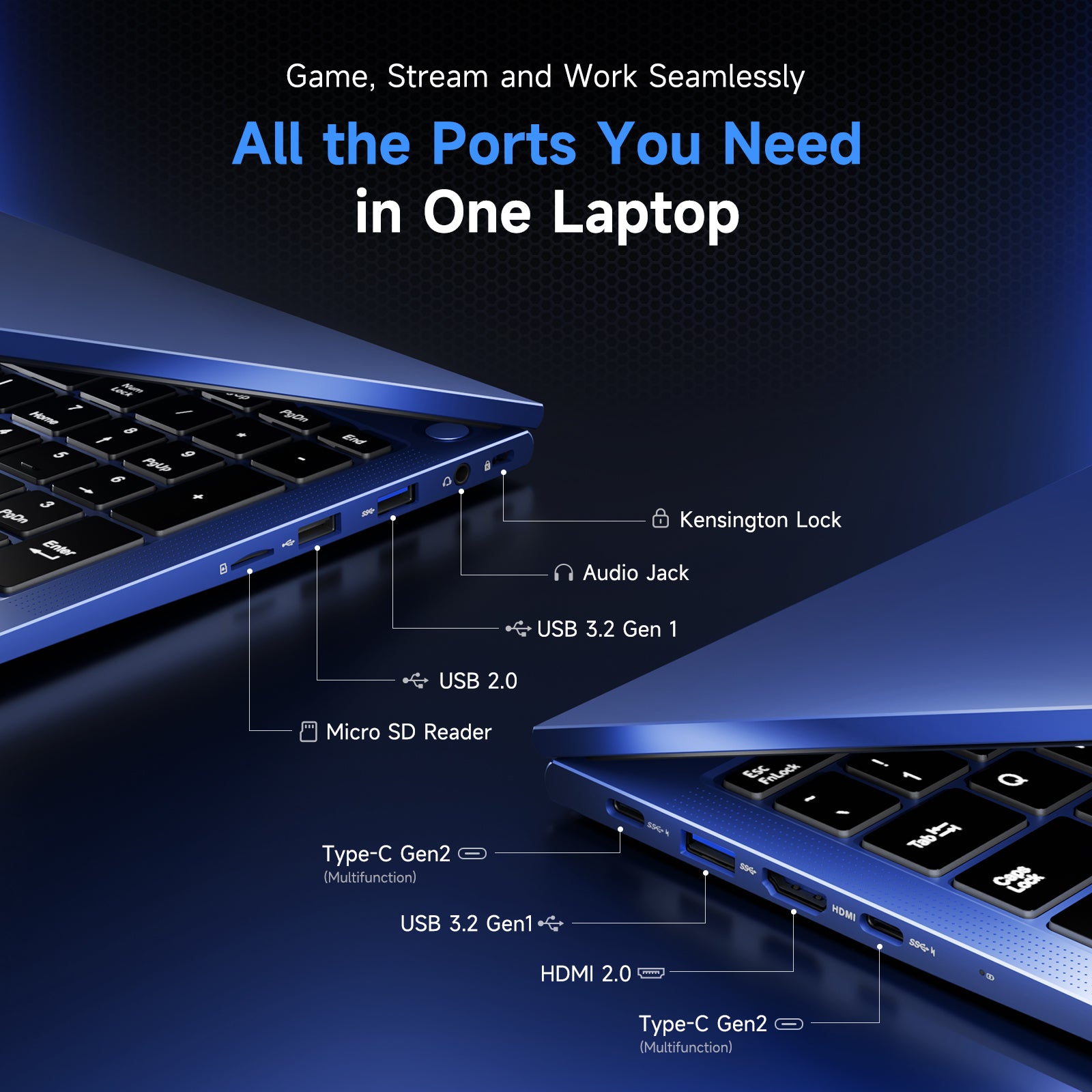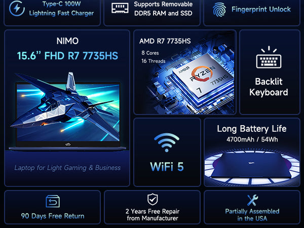 【Up to 64GB RAM DDR5 & 2TB PCIe SSD】Our NIMO laptop features dual-channel memory and supports detachable RAM and SSD. The DDR5 RAM provides faster speed and bandwidth for smooth multitasking and quicker application loading. Enjoy easy access to all your files and programs without worrying about storage space.