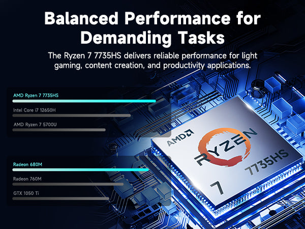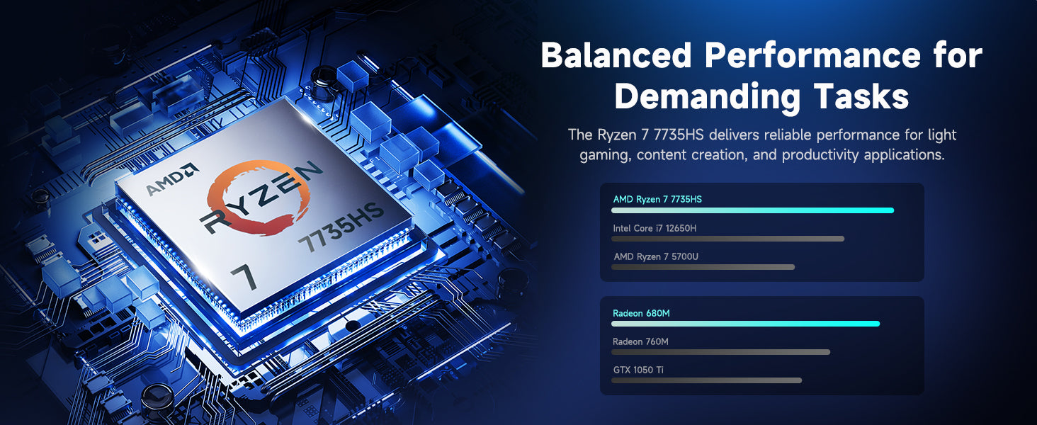 【Powerful AMD 8-Core Processor with Radeon Graphics】 Experience exceptional speed and seamless multitasking with the AMD Ryzen 7 7735HS processor, featuring 8 cores and 16 threads. Enhanced by the powerful AMD Radeon 680M GPU, this combination delivers outstanding graphics performance and processing power, efficiently handling demanding business applications, multimedia editing, and light gaming. Enjoy a smooth, responsive, and visually stunning computing experience.