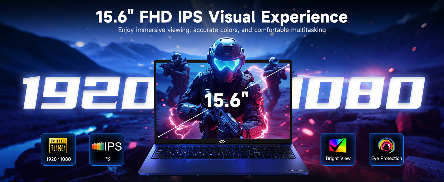 【Human-Centric Design, Intelligent Performance】The NIMO Laptop combines elegant design with intuitive features. The 15.6" FHD IPS Anti-Glare Display offers vibrant visuals with an 85% screen-to-body ratio for immersive viewing. Quickly unlock your device through the fingerprint reader integrated directly into the touchpad. The backlit keyboard ensures comfortable typing in low-light condition. Every detail is designed to simplify your digital experience.